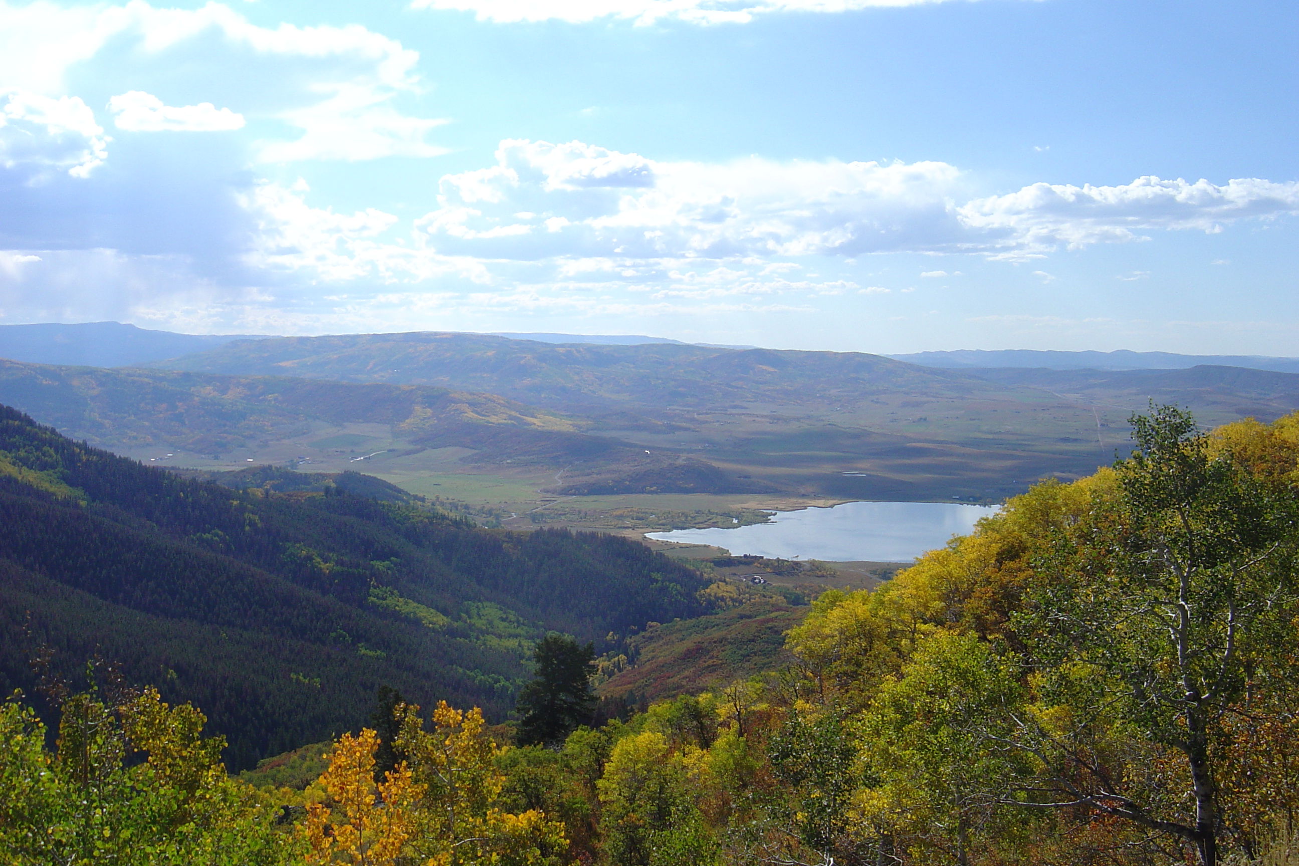 Saturday morning, I got up at 7:30 and made banana bread (my first time ever). After eating breakfast, we drove up to Fort Collins and then west on Highway 14 through the mountains to Steamboat Springs. It was a LONG drive (we covered over 300 miles that day) but it was SO beautiful–the fall colors were at or near their peak. The aspens have such a vibrant yellow and when they are next to the dark green of the evergreens, they stand out so much that it looks like they’re on fire. I took a lot of pictures–but my camera isn’t the greatest so it definitely does not do the beauty of the trees justice.