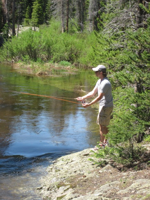 Ahren and Lauren have been to this spot before and had tremendous luck catching fish. But the stream was a lot higher and faster than past years (due to the abnormally high amount of snow the high country received last winter) so we weren’t having much luck. After 30 minutes of no luck, we moved downstream to find Ahren and Lauren.