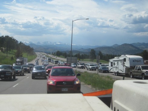 Then we discovered that eastbound I-70 (the main interstate connecting Denver to the high country) was closed due to a semi-trailer that overturned. So our drive home looked like this: