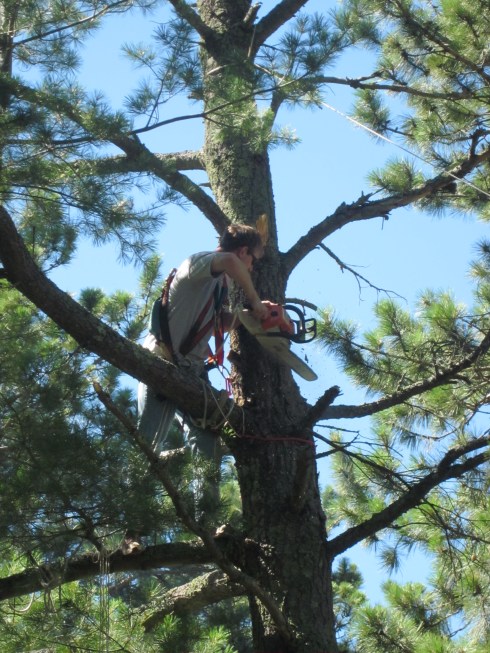 After breakfast, Travis climbed a tree and cut the top off with a chainsaw. Seriously.
