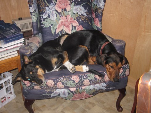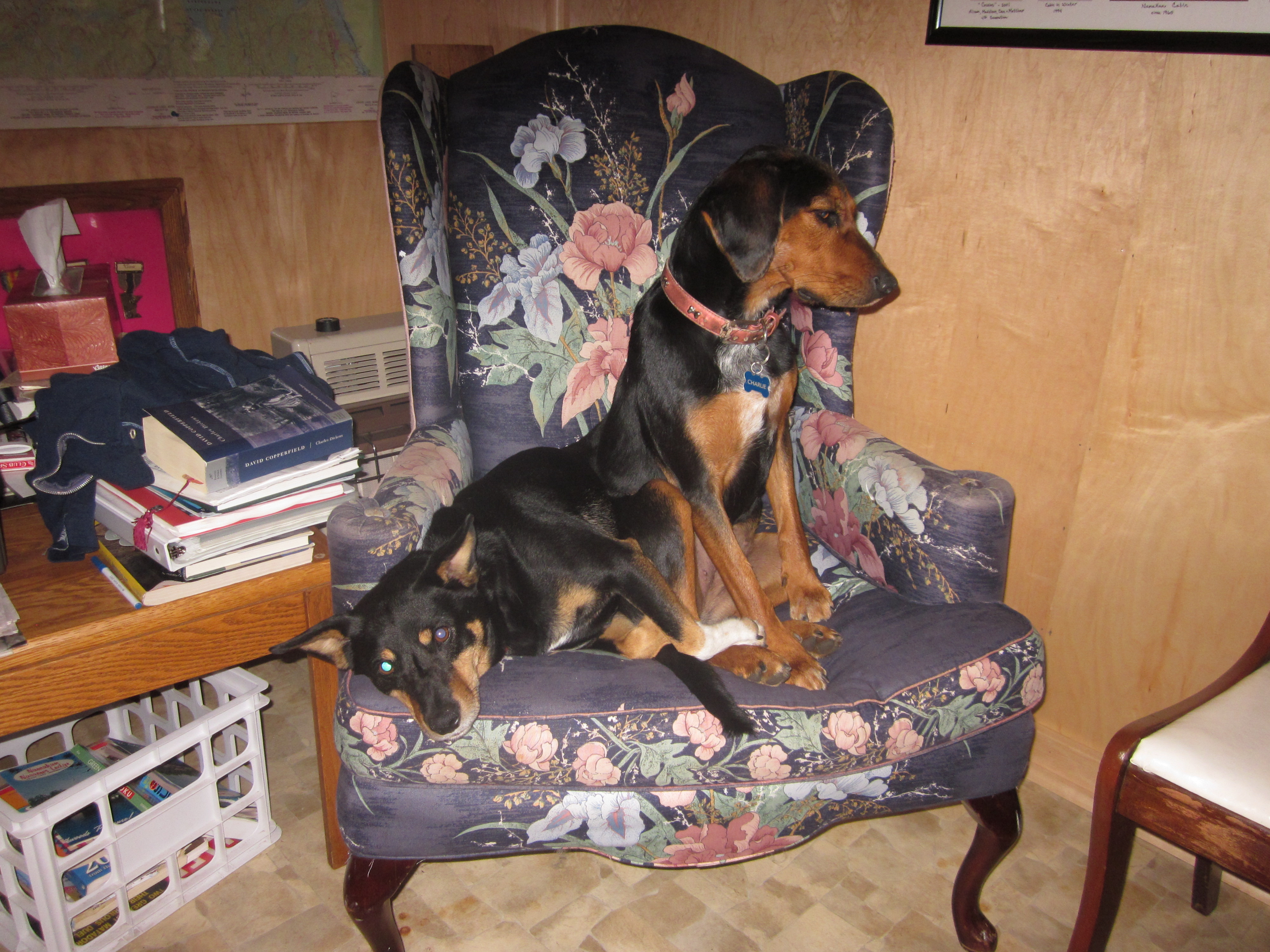 While we were playing Rummy, Katy and Charlie were vying for a spot on the only dog-friendly chair.