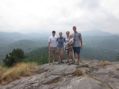 Sunday morning, we ate breakfast (banana pancakes made by Mark) and then hiked up one of the mountains nearby. The hike was no joke! It was challenging for me, I think mostly because of the humidity (it’s amazing how much that makes it hard to breathe just like high elevation), but maybe also because I hadn’t hiked since the Fourth of July. I have discovered time and time again that triathlon/running shape does not equal hiking shape. I must admit that I was very frustrated on the way up during this hike because it seemed like everyone else, including Sarah who’s pregnant, was in better shape than me! They were just moseying up the mountain while I was hacking up a lung. This just reveals my pride in being “athletic” – something for another blog post.