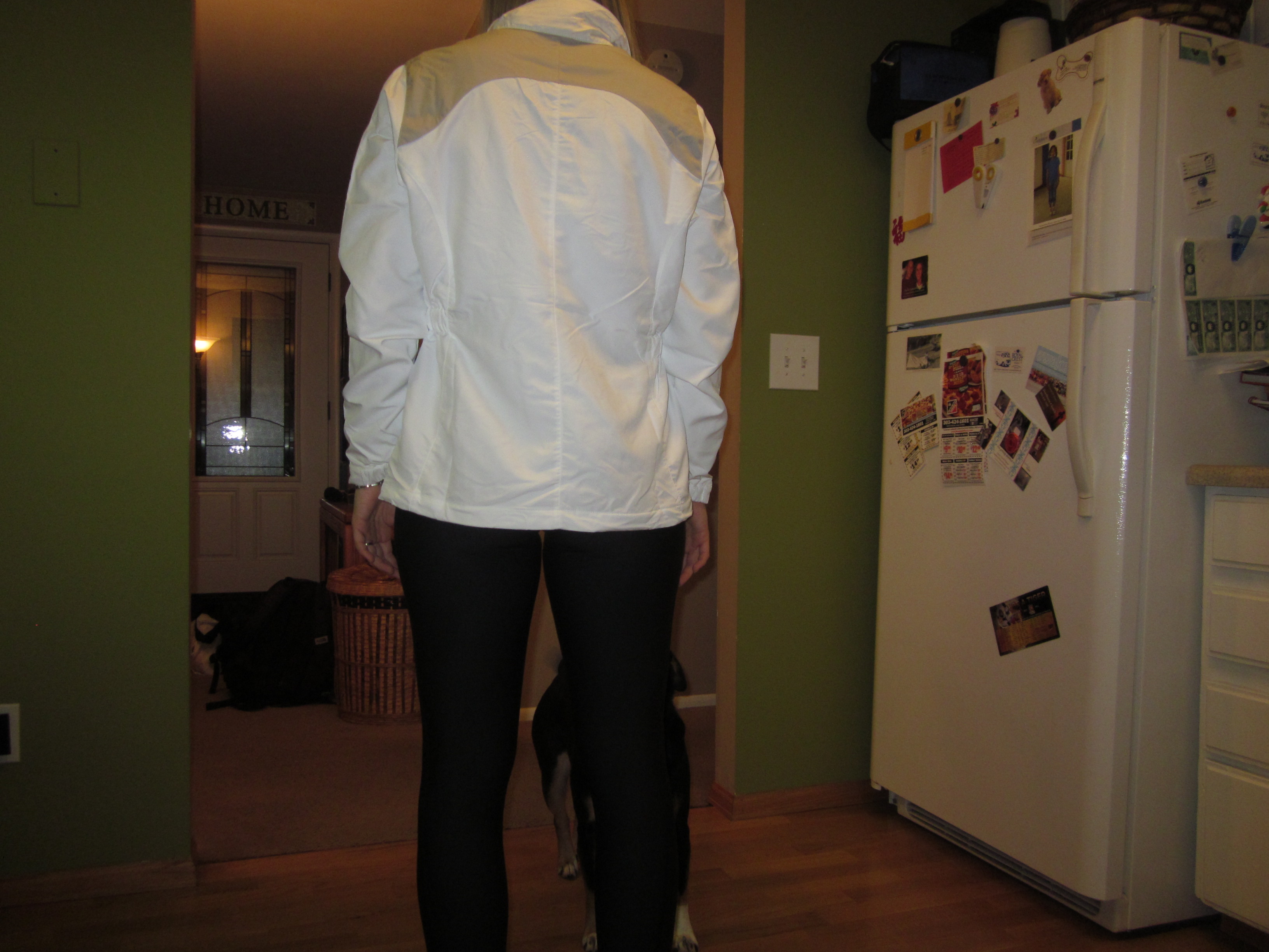 Also a sad little side note: the jacket has a cinch at the bottom and the little plastic thing rubbed against my UA tights, so now there’s a fuzzy spot on my tights. ::tear::