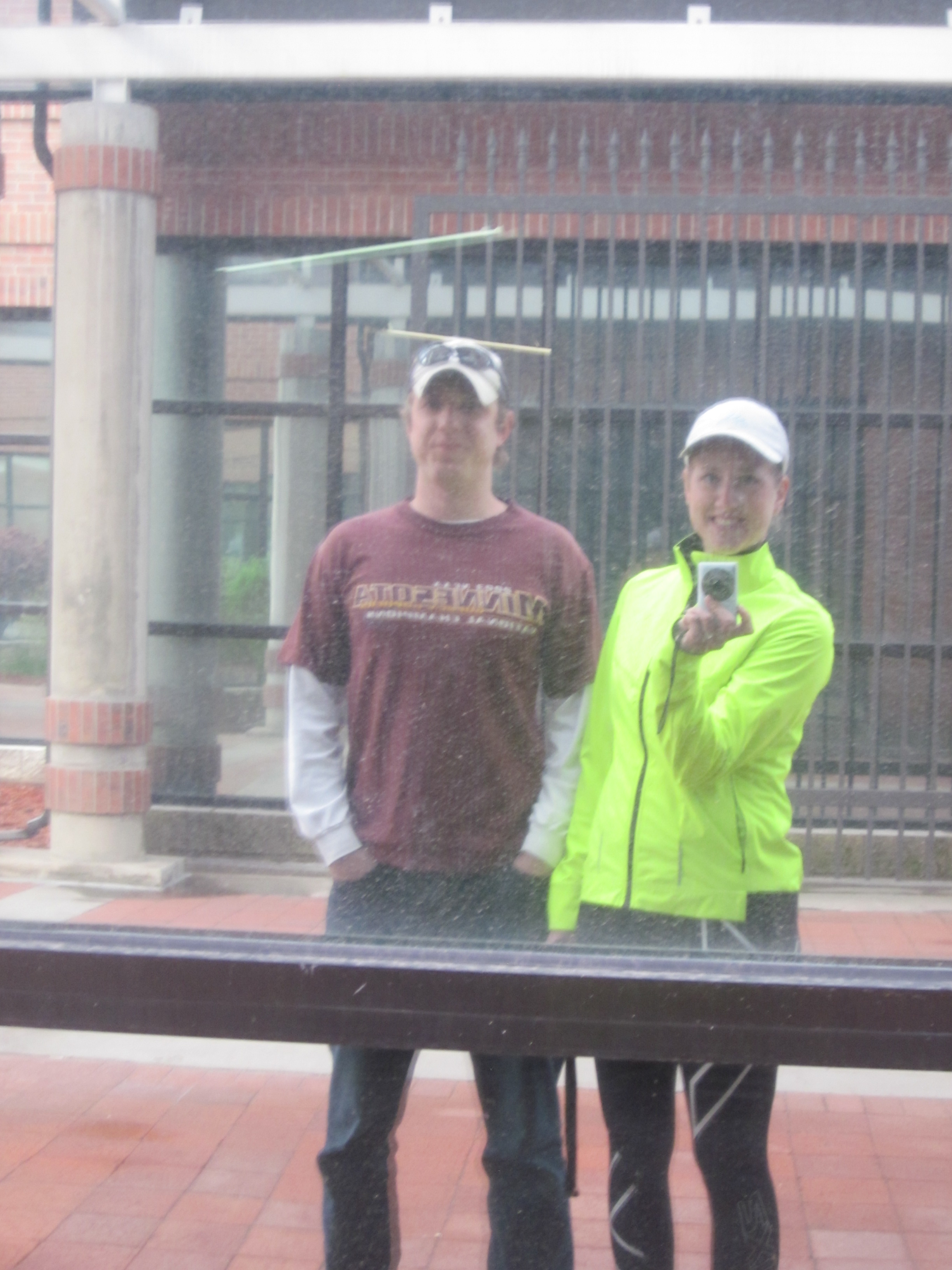When we got home, I checked the weather report and it said 40 degrees, rain and 25 mph winds from the NW. We would be running north so this was simply perfect weather (ha, not!). I was trying to stay positive as I grabbed my winter and spring running jackets, my 2XU compression tights, a long-sleeve shirt, a t-shirt, my running hat, and Smart Wool socks. I got everything else ready – race directions, course map, gels, Camelbak, coffee for the morning – and went to bed around 9:30.
