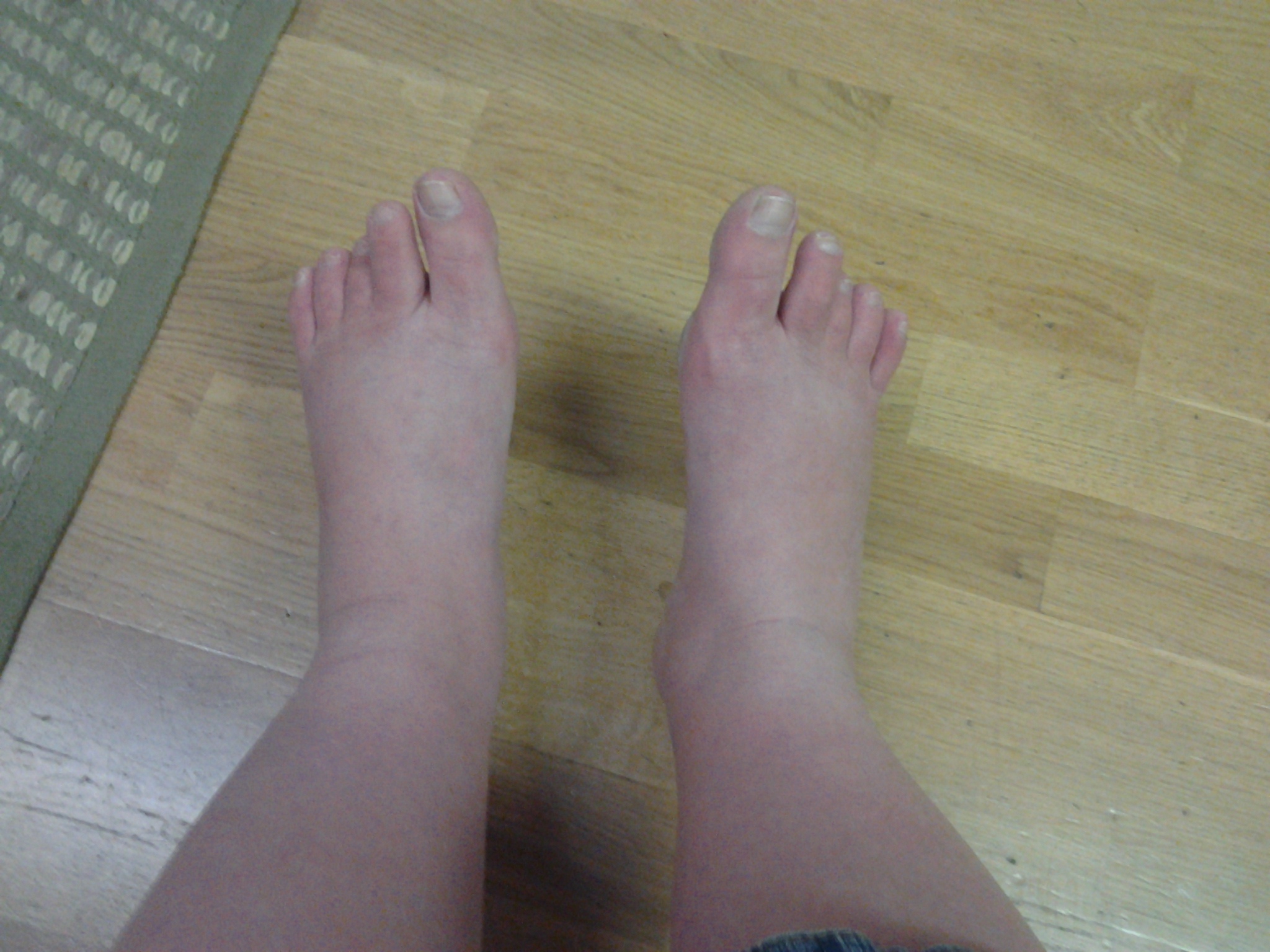 For a while, my ankles only got swollen after sitting all day at work, or traveling, or standing on my feet for a while. Now they’re just constantly swollen. Even the three pairs of flats that I’ve been wearing to work for the past 3 months are getting tight. When I wear tennis shoes on my walks, they’re laced up almost as loose as they’ll go (when it’s nice outside, I just go for the flip flops instead). When I kneel and sit on my heels, it feels like I’m wearing gel pads on the tops of my feet. And twisting my feet to the side is actually pretty uncomfortable.