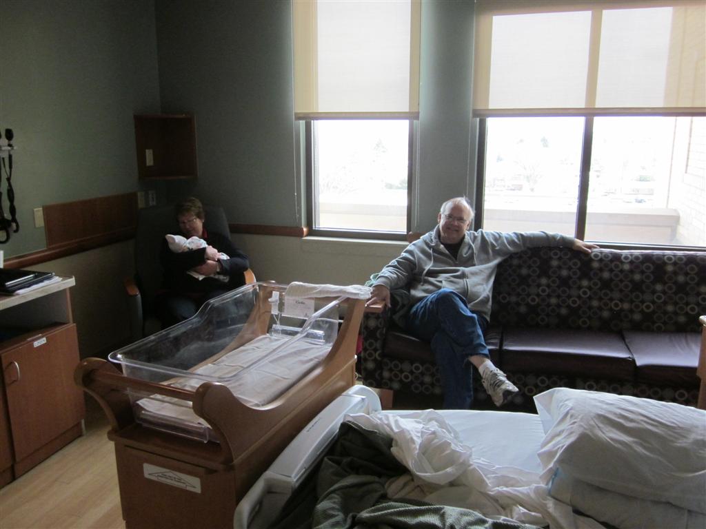 My parents came to visit for a few hours a couple times each day, which was nice. They got to see and hold Emma, and Travis and I got a little bit of a break. We were told numerous times to sleep when Emma was sleeping, but that was nearly impossible with how many people came into our room what seemed like every hour – our pediatrician, my doctor and nurses, volunteers with cookies, housekeeping, specialists doing infant tests, etc. We wished that we had a “Do Not Disturb” sign.