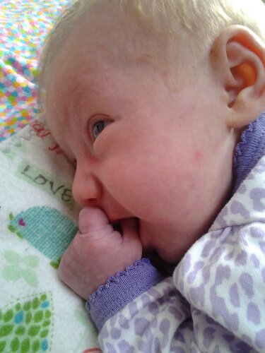 * Sucking on her pacifier