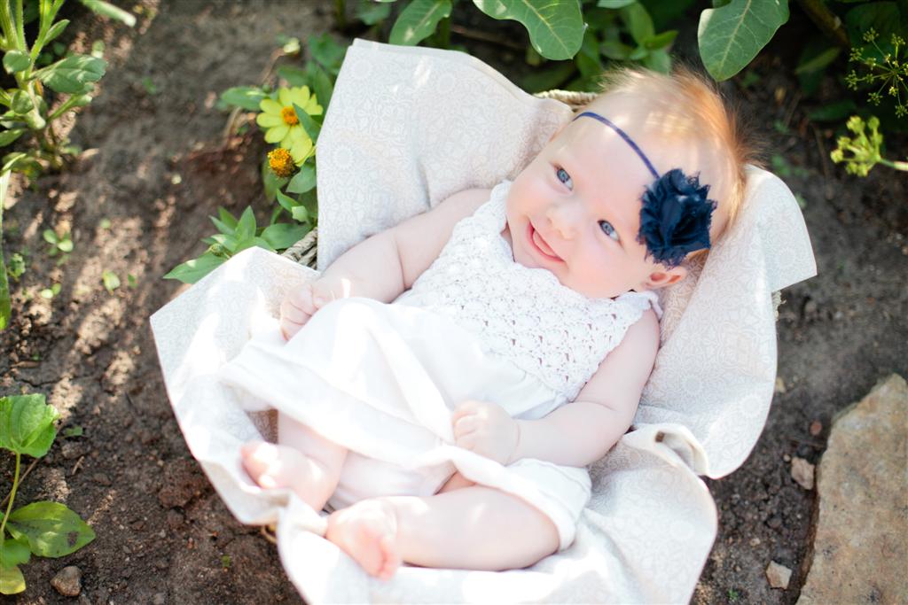 When we were back in Minnesota for the 4th of July, we had our good friend Jen from Kitestrings Photography take Emma’s 3-month pictures. I was hoping to capture Emma’s great wide smile but unfortunately, she was not in a very smiley mood during our photo shoot, due to her only taking a 10-minute nap on our way down to the Cities. We got some great pictures anyway though, thanks to Jen’s talent! These are some of my favorites: