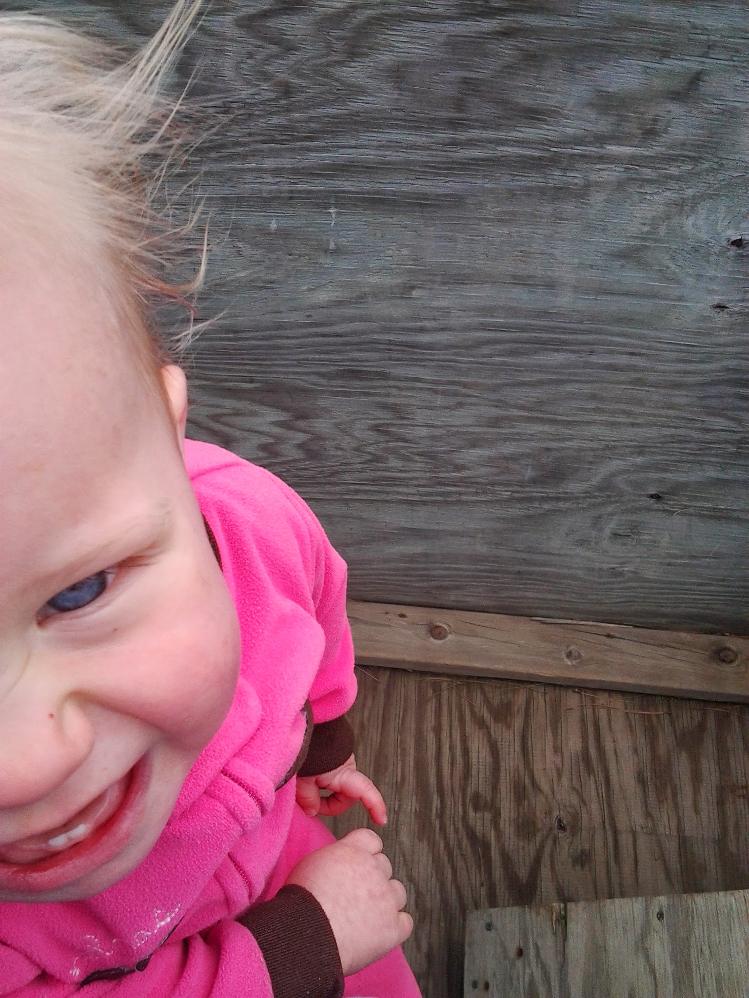 She is still our little daredevil and LOVES going down the slide, swinging as high as she can, and having daddy “flip” her onto his shoulders from the floor. He lays her down on her back, head toward him, and grabs her left hand and foot in his right hand, her right hand and foot in his left hand, and then swings her up on to his shoulders. She loves it. Emma and I also have a mommy/daughter flipping trick. Emma sits facing me and I stand over her, grab her belly from behind and flip her up so she’s sitting on my chest, feet by my ears. It’s a good time.