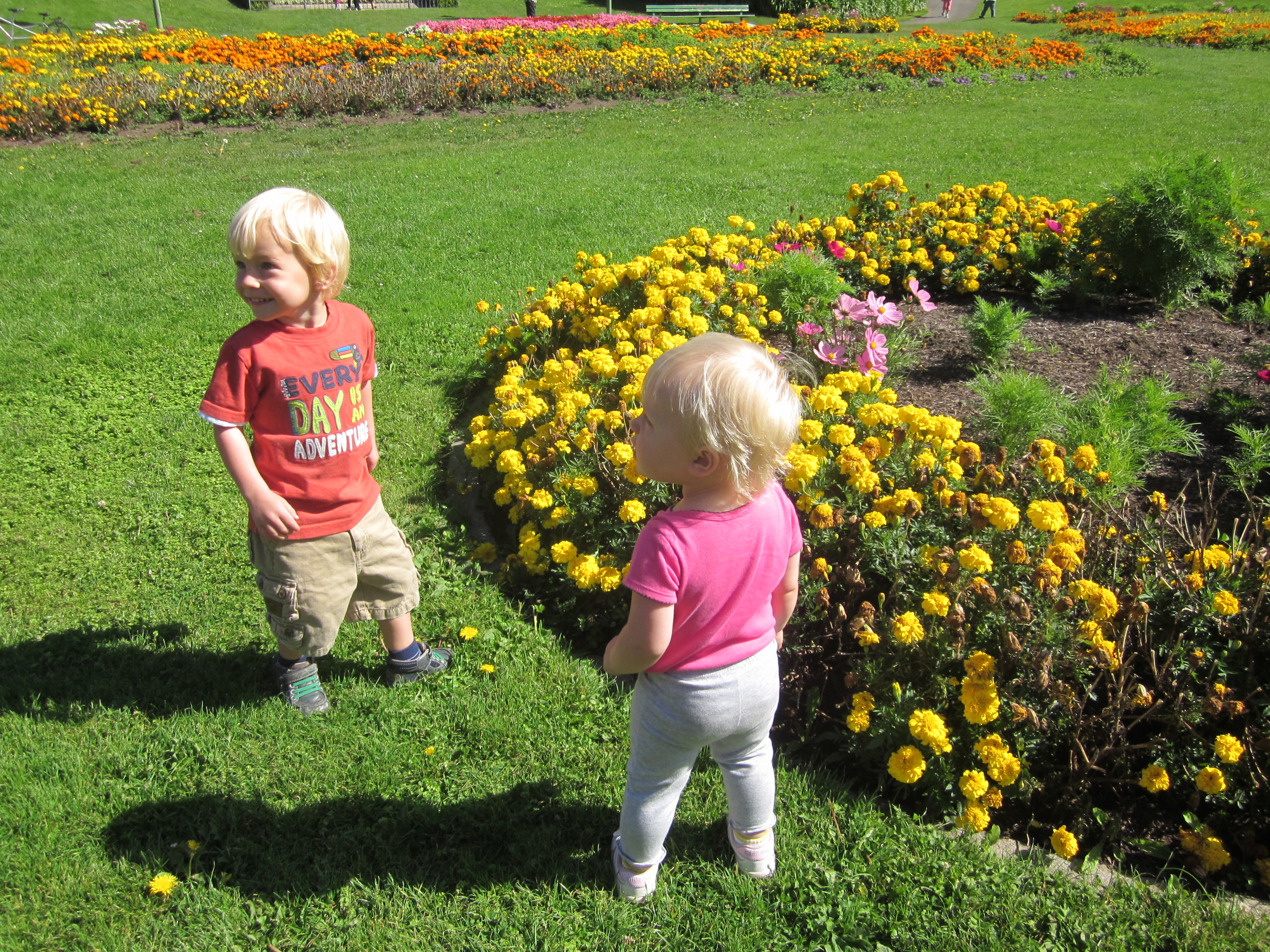 Checking out the flowers at the Conservatory in Golden Gate Park with cousin Jensen