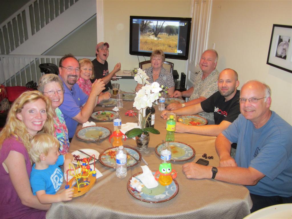 My family rented a VRBO house that had 2 bathrooms, 6 bedrooms and slept 14, so we had my 2 other brothers and sisters-in-law, nephew, 3 cousins and 1 boyfriend, 2 uncles, 1 aunt, my parents plus me, Travis and Emma all staying in the same house. Luckily, our oven was broken when we arrived and the owners compensated us by giving us access to the downstairs unit, which had 4 more bedrooms and a bathroom. So we had plenty of space to spread out in the end.