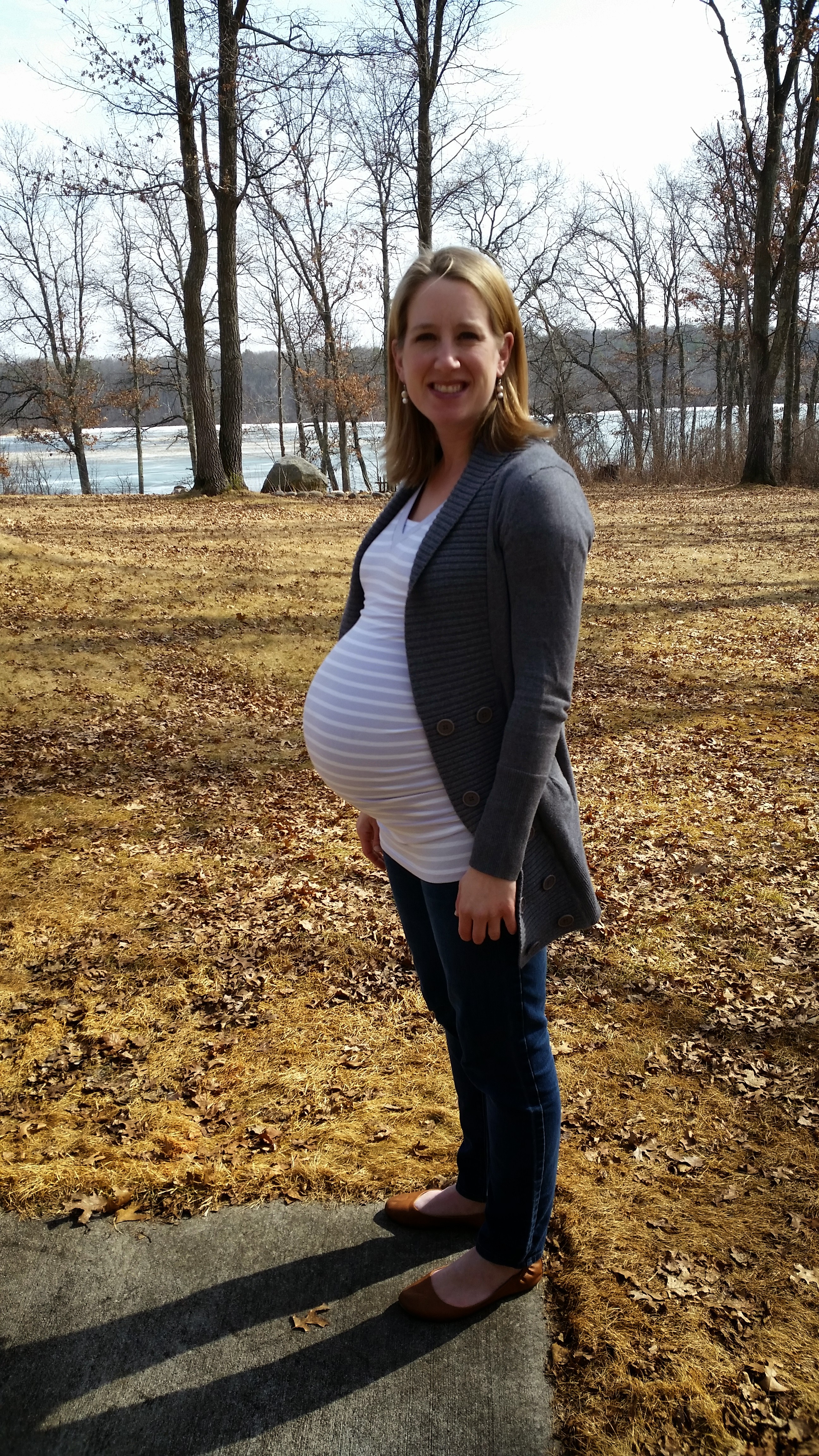 I’ve gained pretty much the same amount of weight with this pregnancy as I did with Emma (a little over 30 pounds thus far), but it seems to all be in the belly. Shirts that fit me my entire pregnancy last time no longer fit this time, so getting dressed is a fun challenge! I looked for some more maternity clothes at Target but they always have the cute stuff when I’m not pregnant. I’m also so. over. pants going over the belly so I might just start wearing dresses more often, now that it’s nice outside (nice meaning in the 40s and 50s). Thank goodness I can wear flip-flops finally. Shoes were getting tricky. I have had less swelling this time around too, which has been nice, though the cankles have made an appearance a few times (usually on days when I haven’t been as good about drinking enough water, which makes sense). I did take my wedding rings off though, just to be safe.