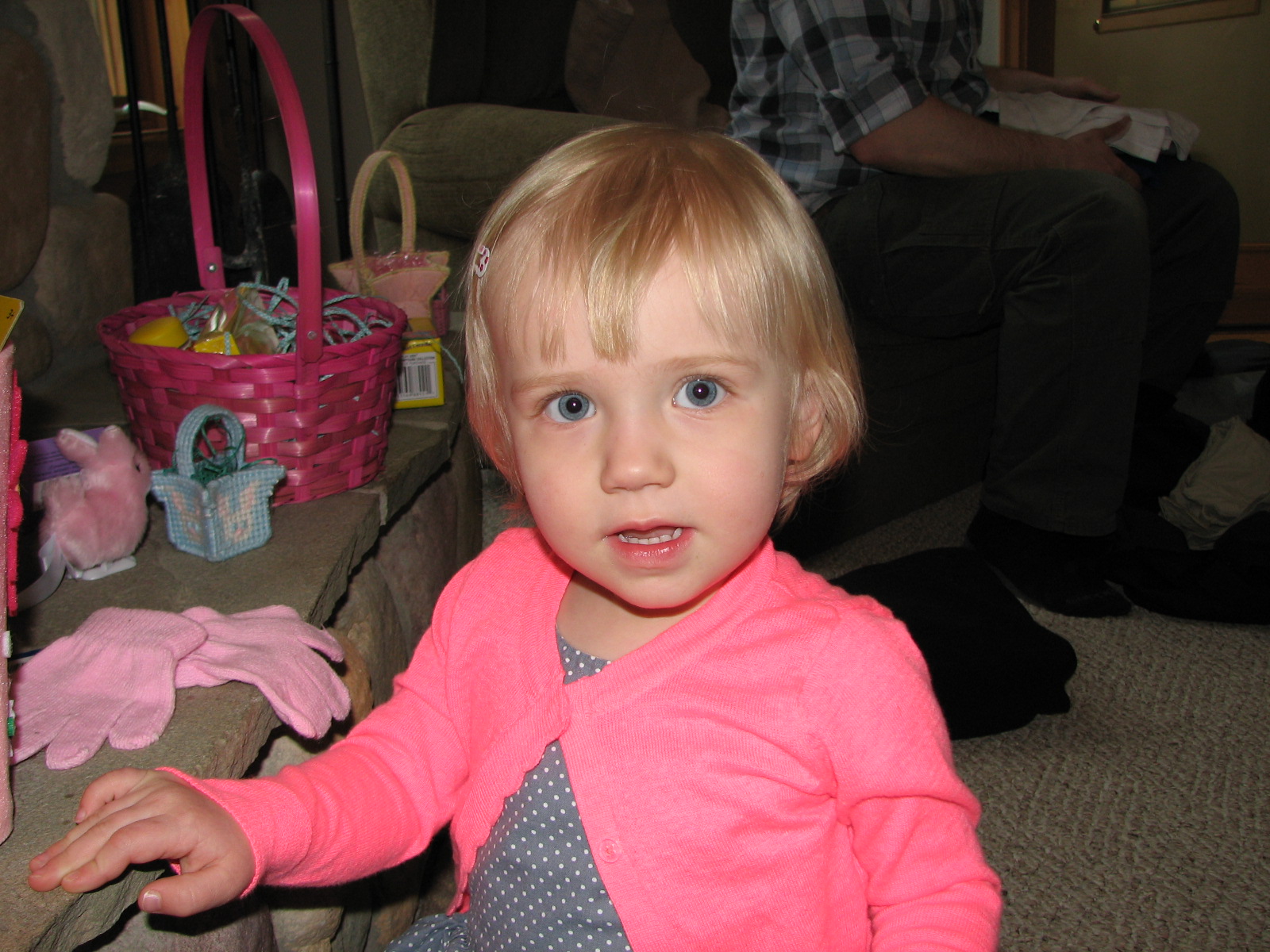 After church, we headed back to the house to pack up the rest of our stuff, I nursed Annabelle, we loaded up the dogs and girls, and were on our way to Nevis by 1 pm. We got there an hour later and poor Emma woke up the minute we parked the car, so her nap was very short. She rallied though and had plenty of energy to enjoy her new toys from G&G and Auntie, and do her first Easter egg hunt.