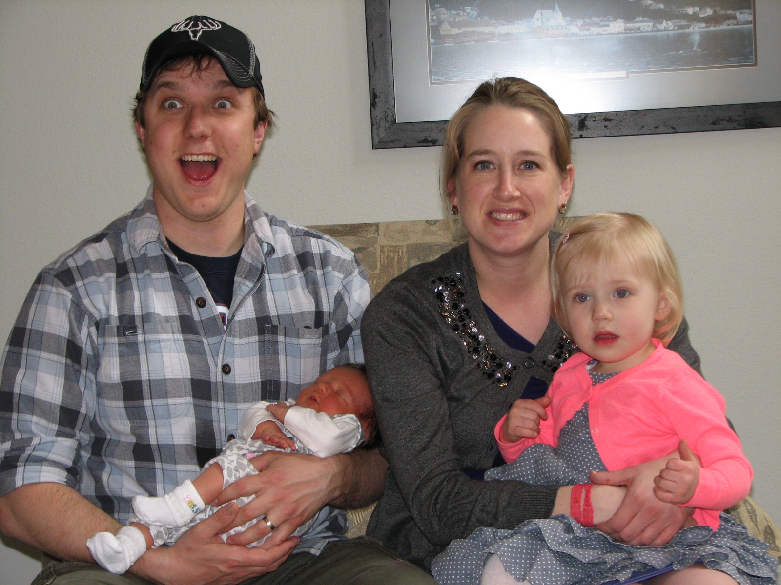 Even though Miss Annabelle decided to arrive early, our Easter plans pretty much stayed the same and were executed with success! We ended up going to the second church service at 10:45 instead of the first one at 9:00, and only planned to stay for the worship at the beginning. Emma had thrown up the night before (from teething mucus we think) so we didn’t put her in the nursery like we usually do, and she doesn’t have a very good track record of making it through a church service. But when the worship was over and both girls were still content, we decided that we’d just stay until one of them started to crack. And we made it through the whole service! Annabelle ended up being held by Travis, and I had to entertain Emma with games on my phone but I was impressed that we were able to stay for the whole thing.