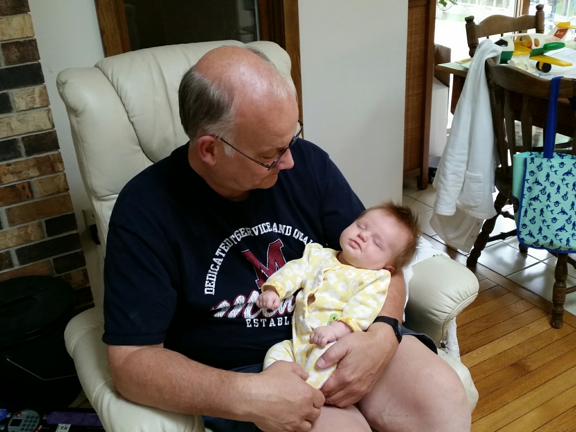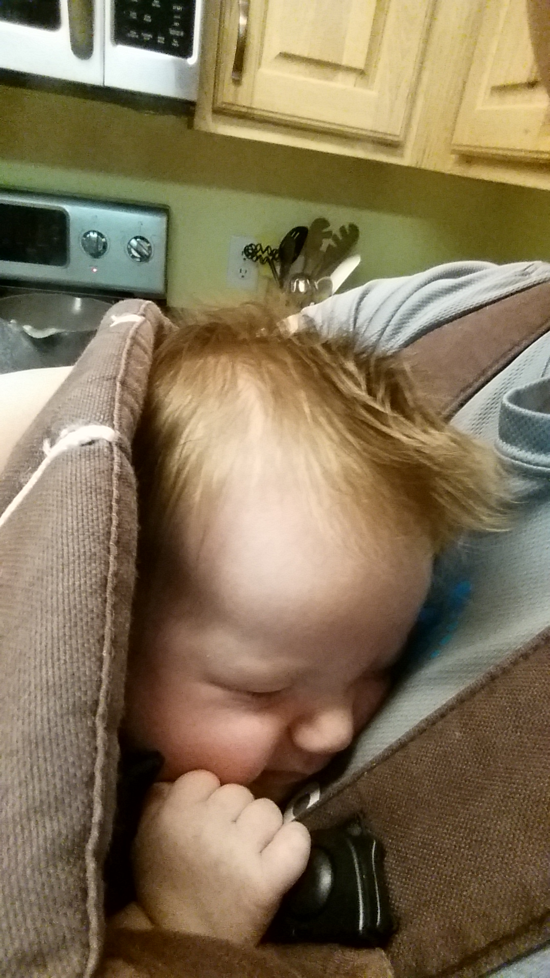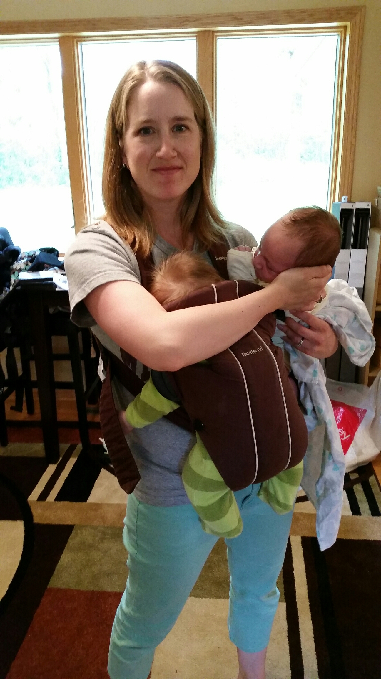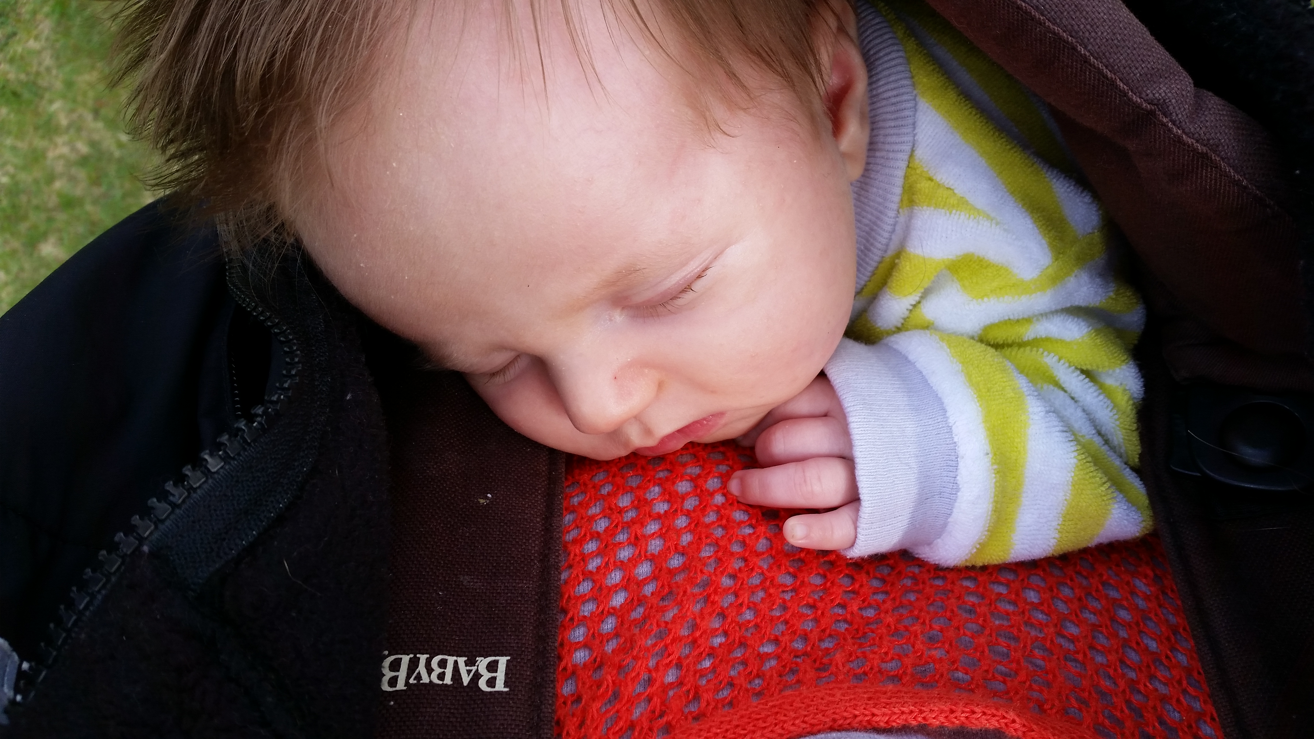I can usually swaddle Annabelle in a blanket, put her in the swing, turn it on and she’s asleep in 5-10 minutes. She also likes to be held vertical on our chests, or lying in our arms if she’s swaddled, but she seems to sleep best either in the Bjorn or swing. The other night, we went out to eat and even though Annabelle was awake when we got there, she fell asleep in her carseat and slept until it was time to go. What a champ!
