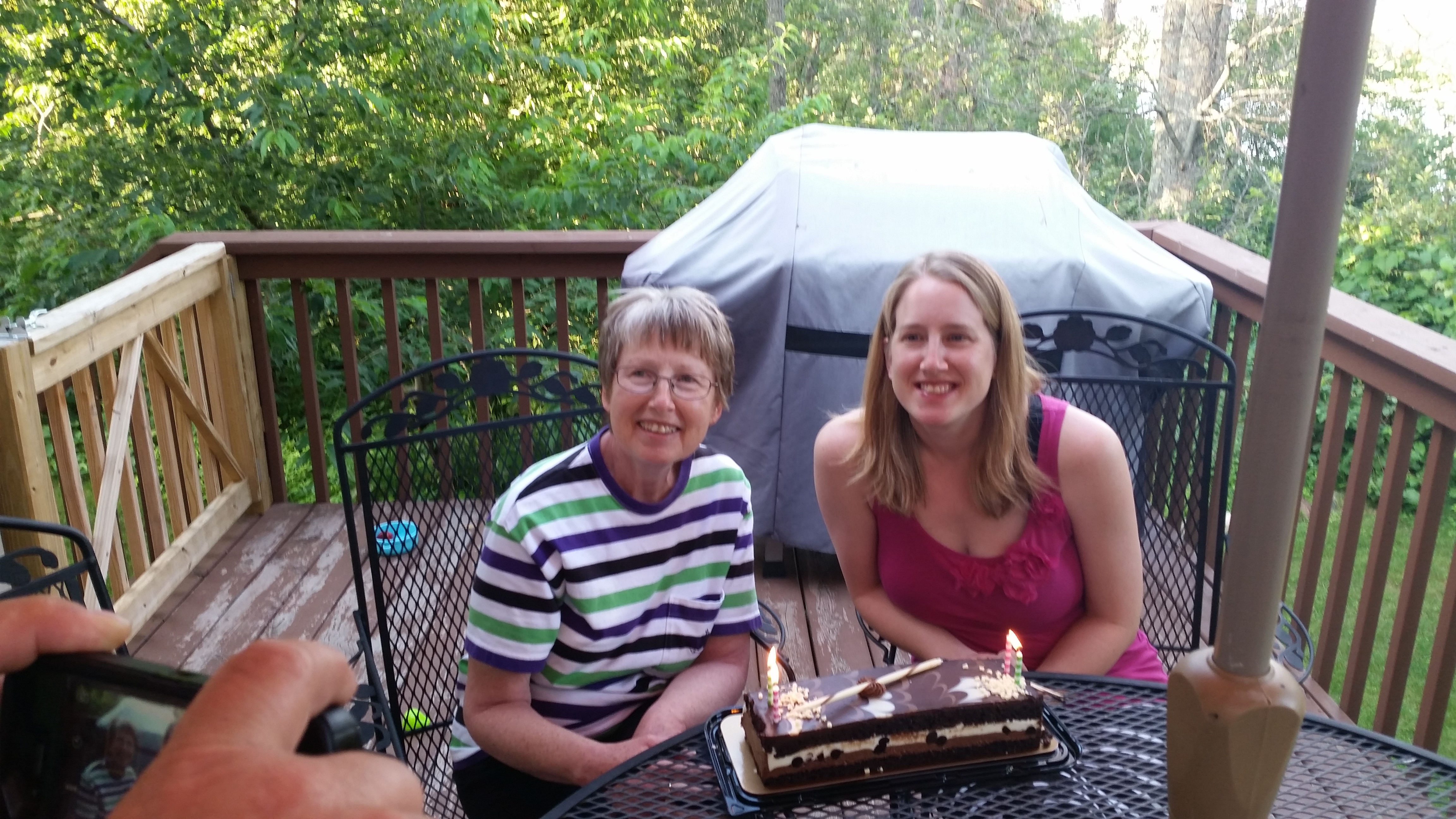 After dinner, we headed back to Travis’ parents’ house. Ironically, his parents were down at my parents’ house in Rochester because Al had had heart surgery that day at the Mayo Clinic. (He’s doing decently well, if you’re wondering.) I put Annabelle to bed and we watched Jim Gaffigan’s Mr. Universe standup on Netflix while Emma bounced off the walls. She was hard to get to sleep that night, and Annabelle woke up a few times because she was too hot and had to burp. Every time I got up to tend to Annabelle, Emma got wound back up. Finally, Emma crashed around 11:15 and we moved Annabelle downstairs to where it was cooler.
