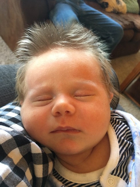 I met with a lactation consultant yesterday because even though Corbin seems to nurse really well and is obviously growing, he is fussy and unhappy often. Almost the only way he’s happy while awake is being tightly swaddled, cradled horizontally in our arms, and jiggled/bounced — and he can tell if you sit down (and doesn’t like it), which makes for some very sore arms and back for whoever is holding him. The lactation consultant observed a partial lip tie and referred us to a dentist in a nearby town who will do a consultation for free, so I think we’ll look into that.