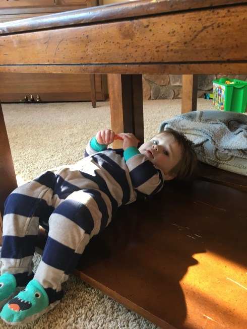 Corbin is still a pretty good night sleeper. If he wakes up at all, it’s just once between 3 and 5. Unfortunately, he almost never goes right back down after waking up. He’s usually up for about 1.5 hours before he’ll go back down. So then I have the conundrum of 1) Getting up for the day at 3:30 or 2) Going back to bed at 5, only to feel like a turd when I have to get up at 7. I usually choose option 2. (It’s just a phase. It’s just a phase. It’s just a phase.)