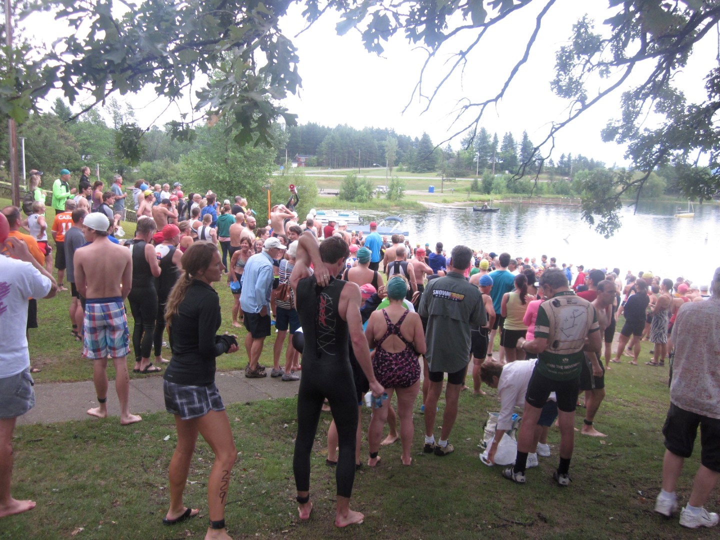 On Friday before the race, we packed and headed up to Nevis in time for packet pickup and the spaghetti dinner benefiting the Nevis football team. My parents met us there. Packet pickup wasn’t busy at all so it only took me about 5 minutes to get my bib, t-shirt and swim cap (no bike numbers at this little race!). This race is capped at 250 participants, so it’s a nice size – and it sells out FAST every year!