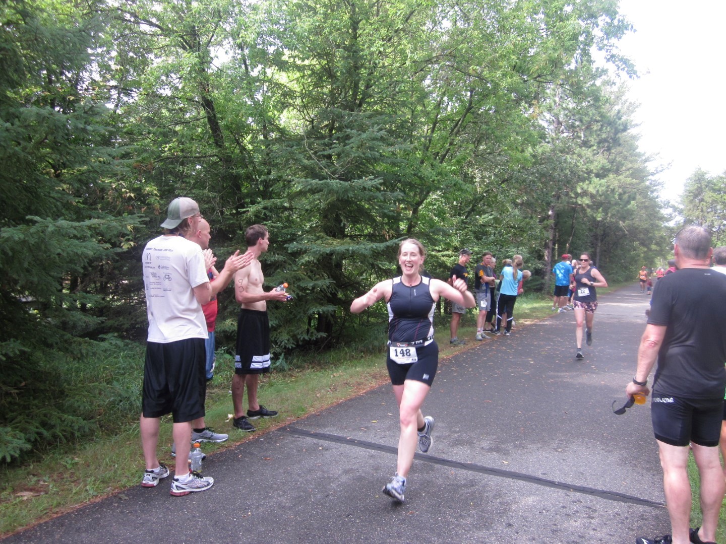 The bike course was a loop, starting out going west from Nevis, then north, east and back south. The first half was rolling hills. I played leap frog with a few people. Whenever I passed someone going up a hill, I thought, “Either I’m in better bike shape than I thought I was, or I’m being an idiot and these people are being conservative and saving themselves for the run.”