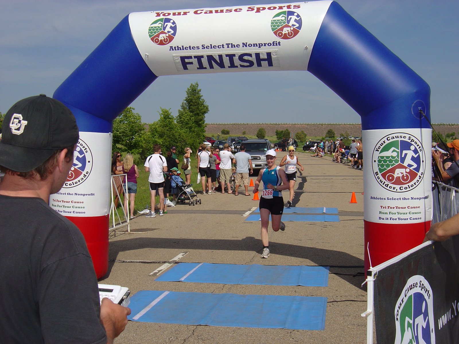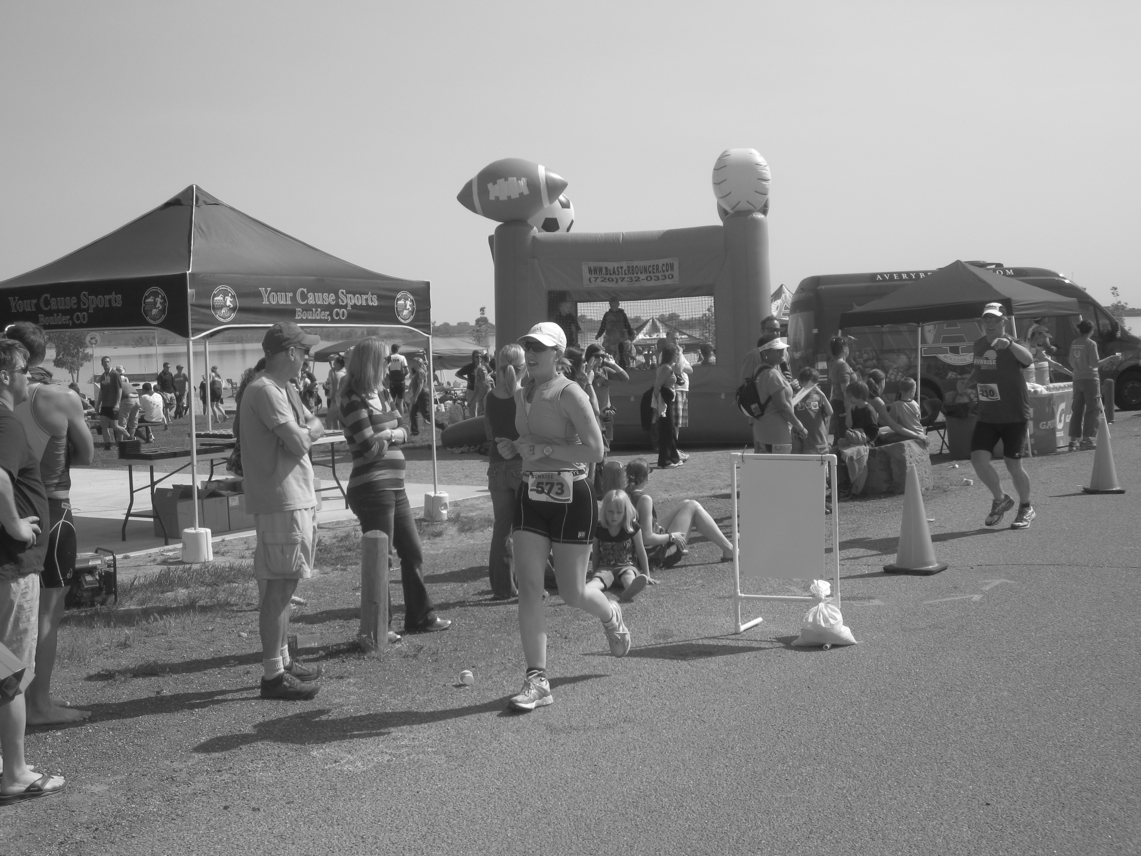 Oktoberfest Finish 9/09In 2010, I worked for Your Cause Sports, a non-profit triathlon company. I worked at about 22 triathlons that summer so I didn’t get to actually participate in any, but I did do two half-marathons: Heart and Sole in Boulder (2:33:50) and Malibu Half-Marathon (2:44:44). I had been planning on doing the full marathon in Malibu but had to drop down to the half due to IT band issues (not enough strength training and stretching!).