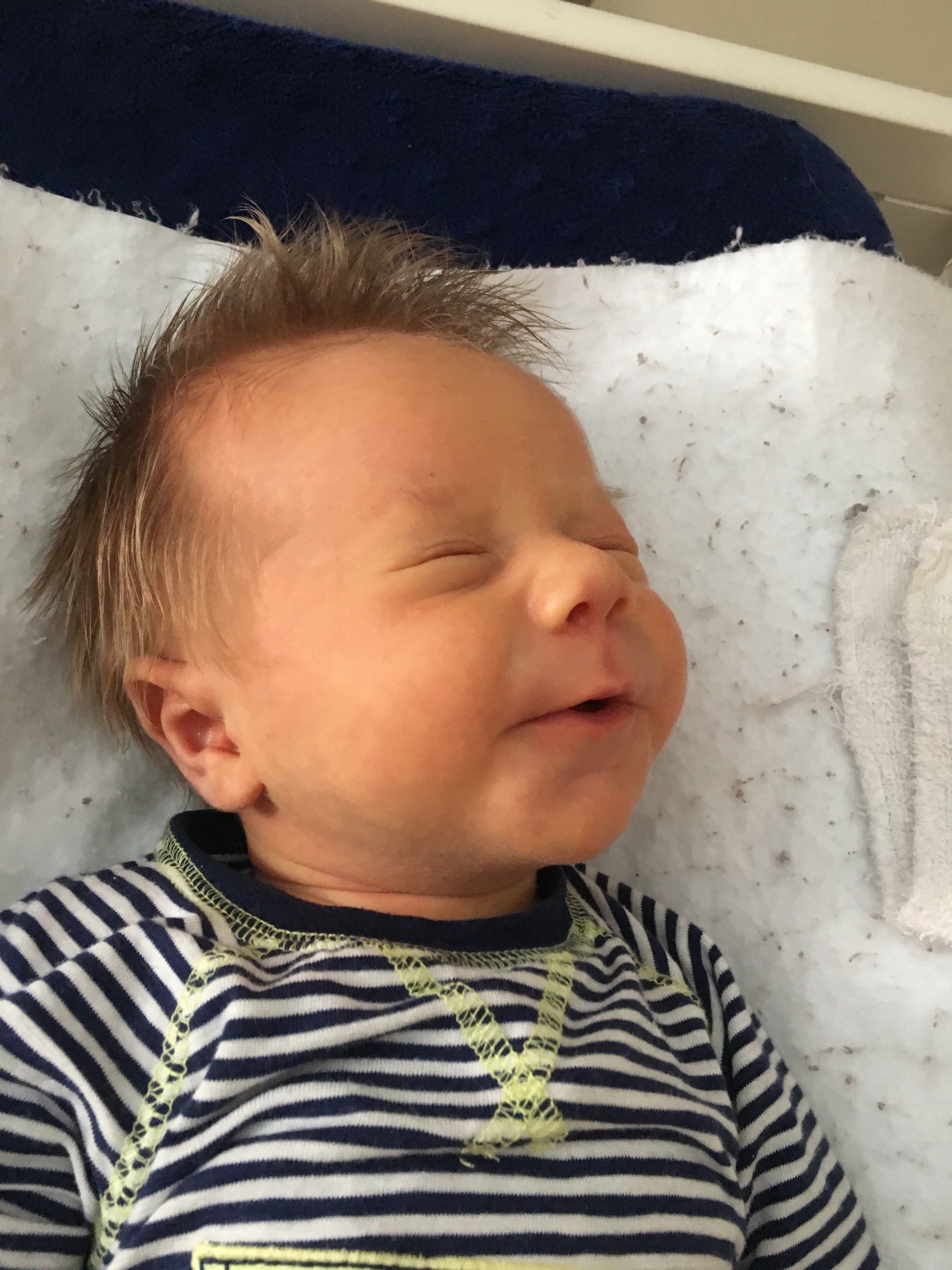 I met with a lactation consultant yesterday because even though Corbin seems to nurse really well and is obviously growing, he is fussy and unhappy often. Almost the only way he’s happy while awake is being tightly swaddled, cradled horizontally in our arms, and jiggled/bounced — and he can tell if you sit down (and doesn’t like it), which makes for some very sore arms and back for whoever is holding him. The lactation consultant observed a partial lip tie and referred us to a dentist in a nearby town who will do a consultation for free, so I think we’ll look into that.