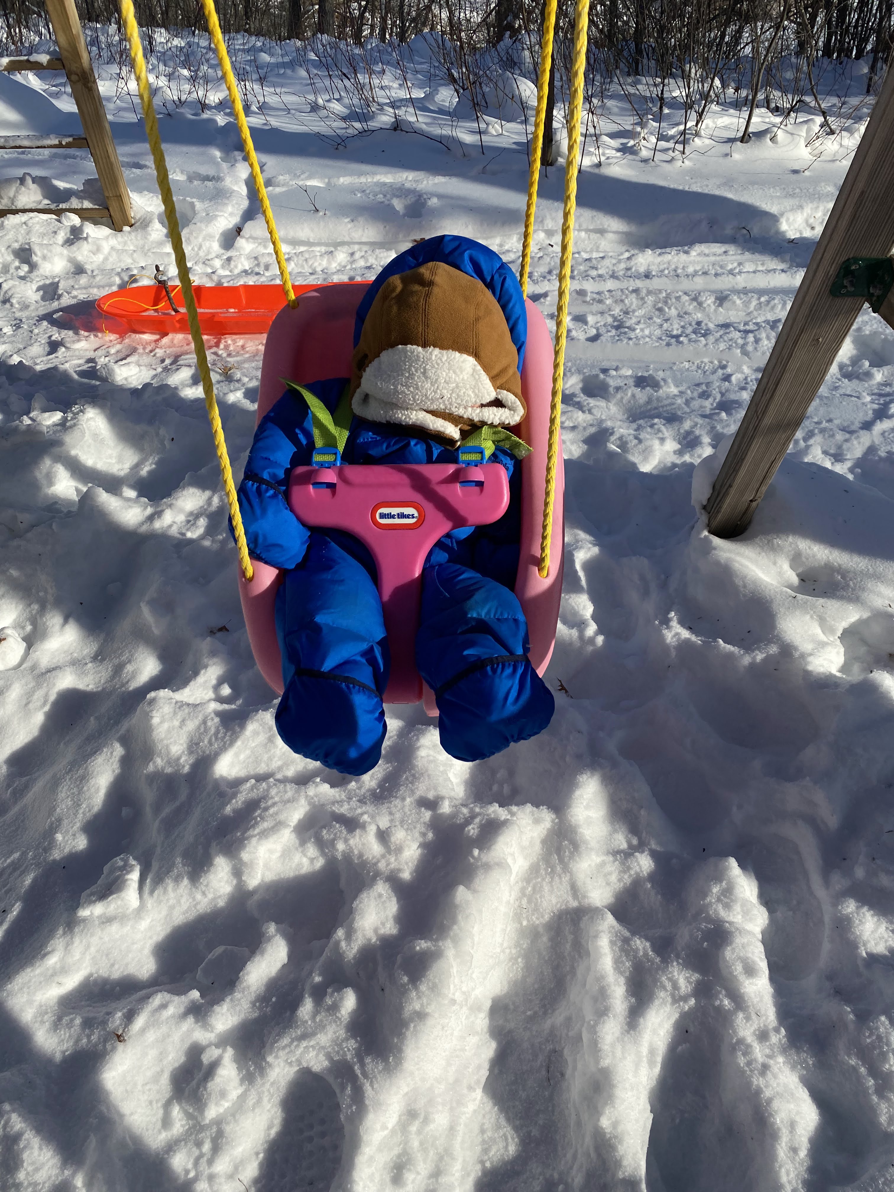 I have also gotten Neola to take a nap in the Ergobaby outside a couple of days (in 30-degree weather!), so that bodes well for Florida when we’ll be out and about more (but then we won’t be wearing snowpants and winter hats)!