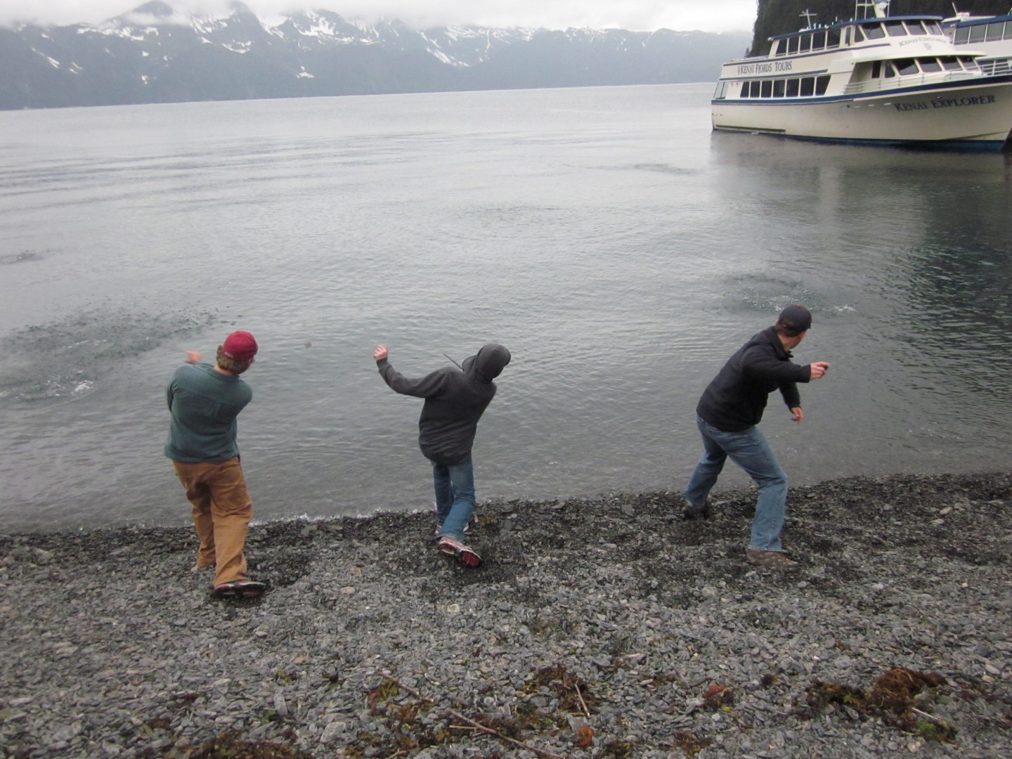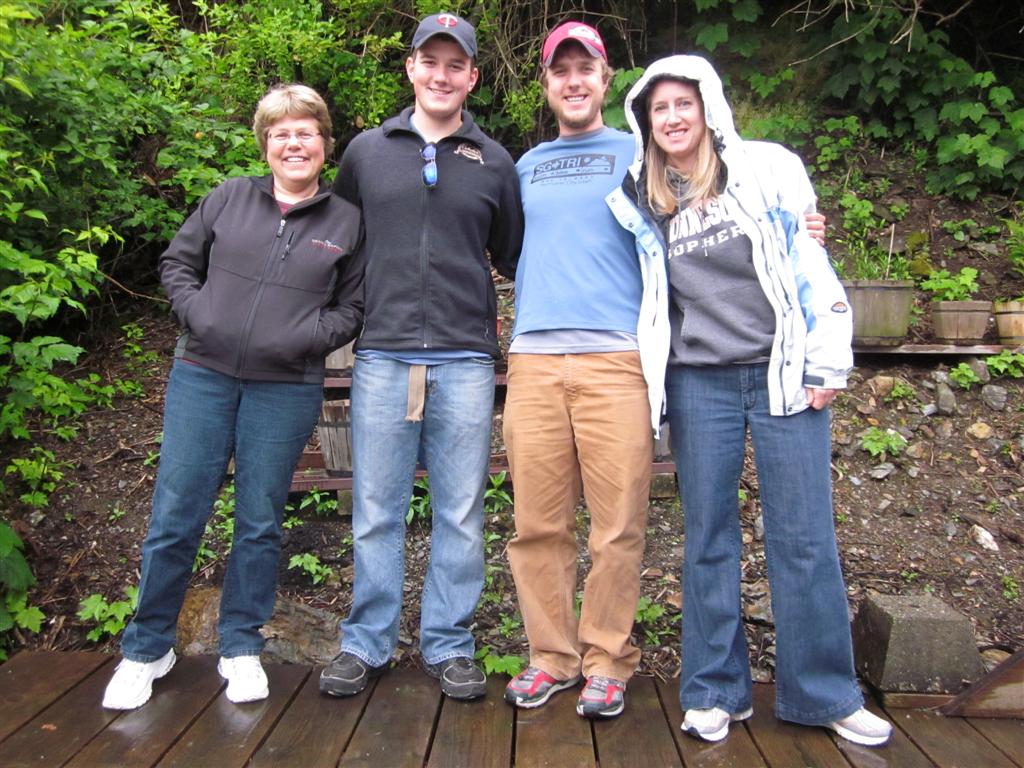 After all of our discoveries, we walked back to the apartment. For dinner, we went to a BBQ hosted by some of Kurt and Marlene’s friends. We brought burgers and drinks and they provided quite the spread. I filled up on all kinds of jello salad before my burger was even done because I decided I’d rather eat jello salad than a burger (though I did end up eating my entire burger too). Alaska reminds me in many ways of Minnesota – the greenery, the snow (in some parts), the bugs, the nice people, the jello salads. Everything except for the ocean and mountains. Minnesota doesn’t have those. Although the ocean has been mistaken for big lakes by several people (Minnesotans)…