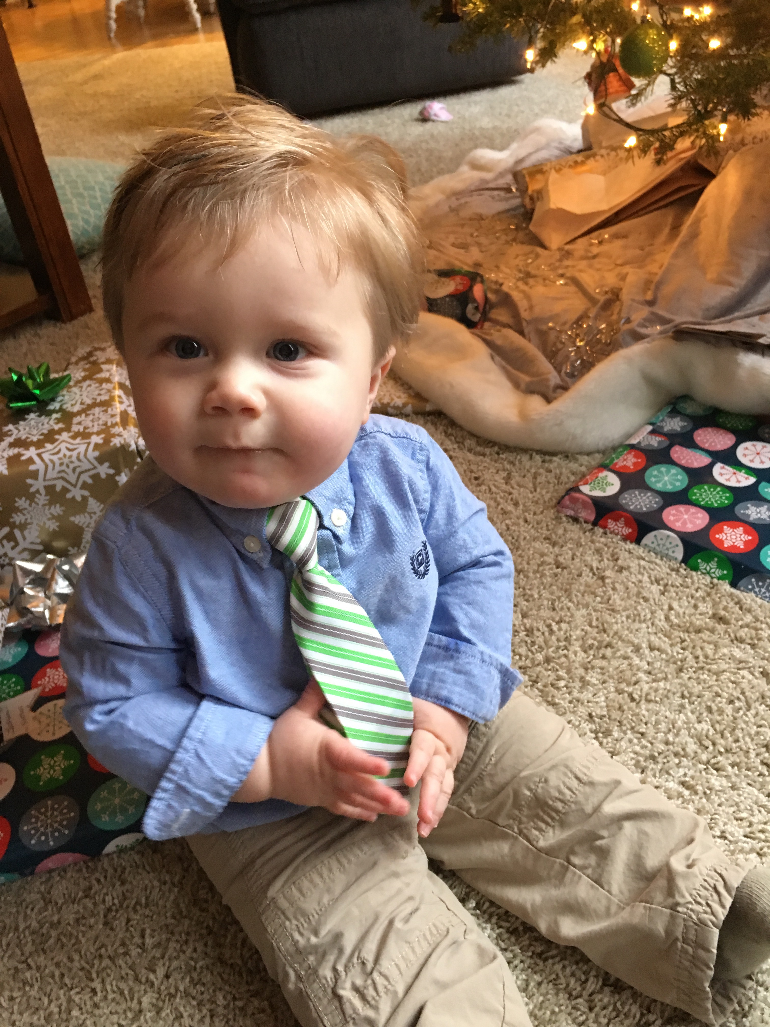 Corbin doesn’t have his 9-month appointment for another couple weeks so I’ll have to come back and update this with his height and weight stats. He’s still wearing 12-18 month clothing and size 5 diapers. I don’t know what size shoe he wears because we haven’t had him wear shoes yet 🤦‍♀️. We put a pair on his Christmas list.