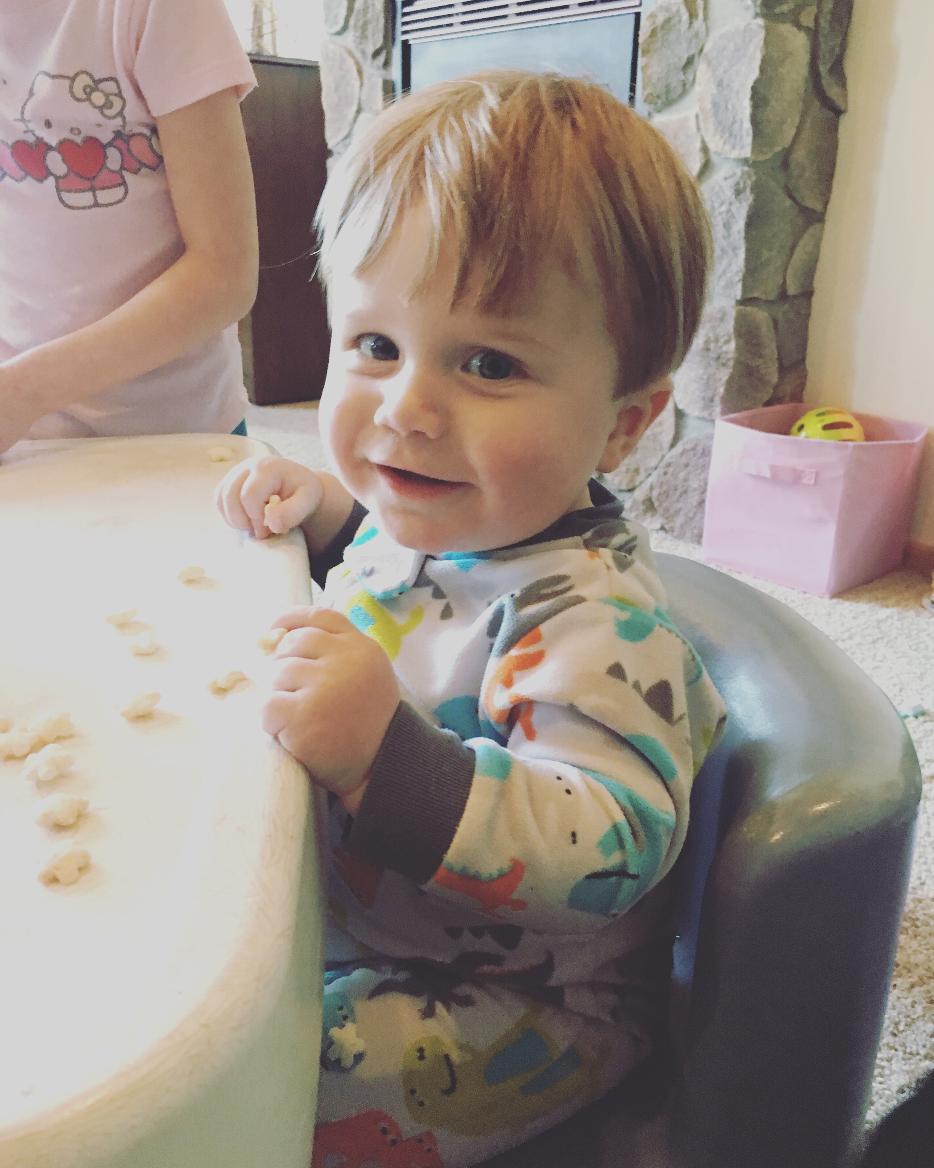 Corbin got his appetite back after being sick! He can still be kind of finicky with food but overall, he’s a good eater — as long as you give him food that he can feed himself. He will hardly ever let me feed him, which rules out yogurt and cereal.