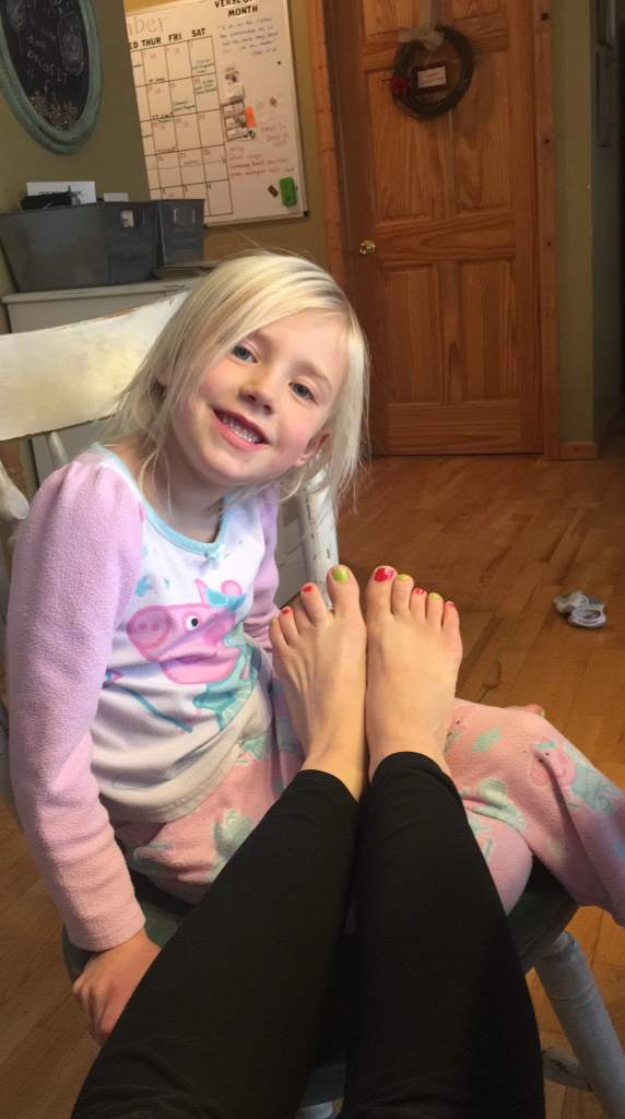 Matching mommy/daughter pedicures (colors chosen by Emma)