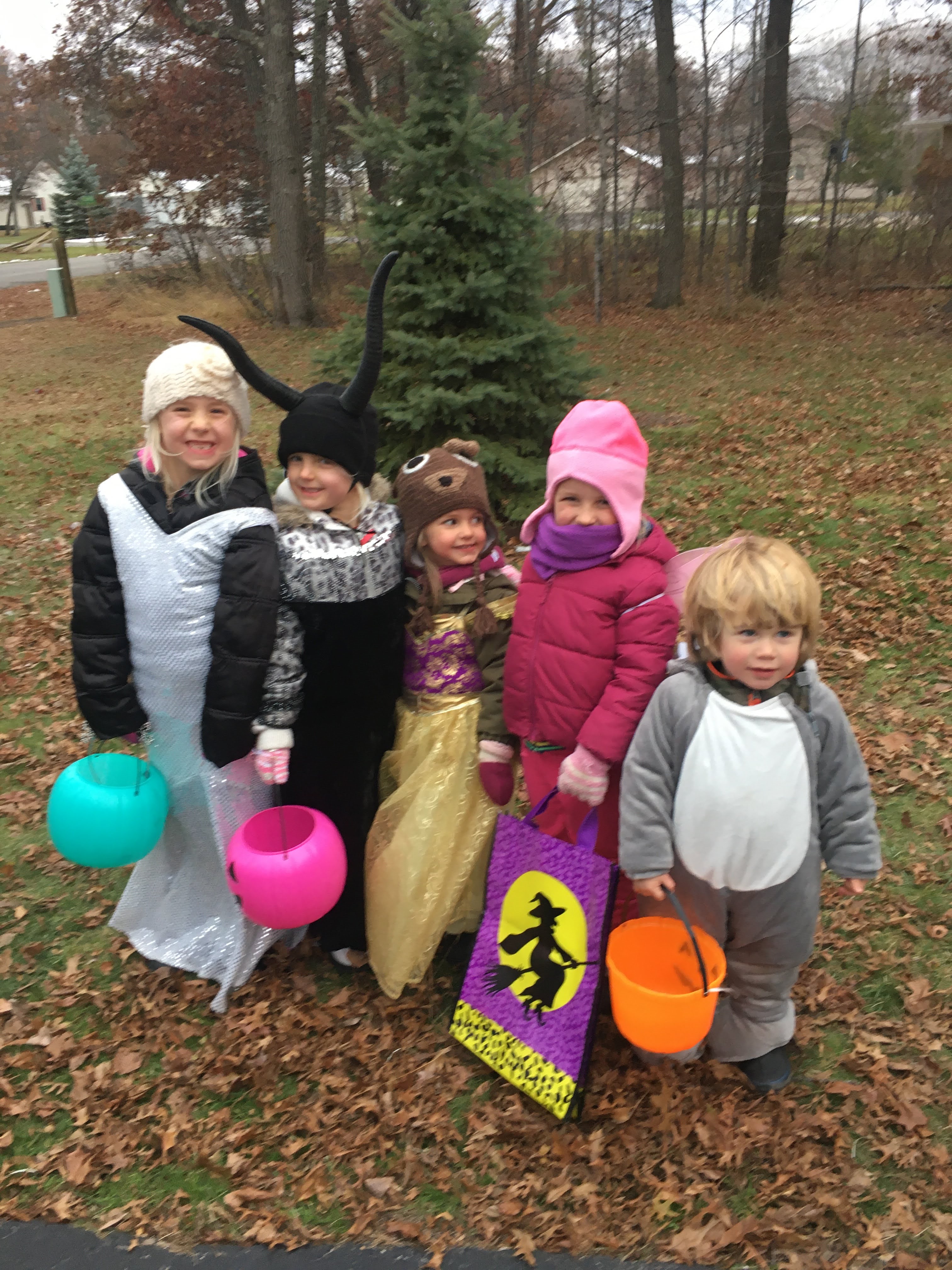 For Halloween this year, she was a princess/bride. Annabelle was Maleficent and Corbin was a shark.