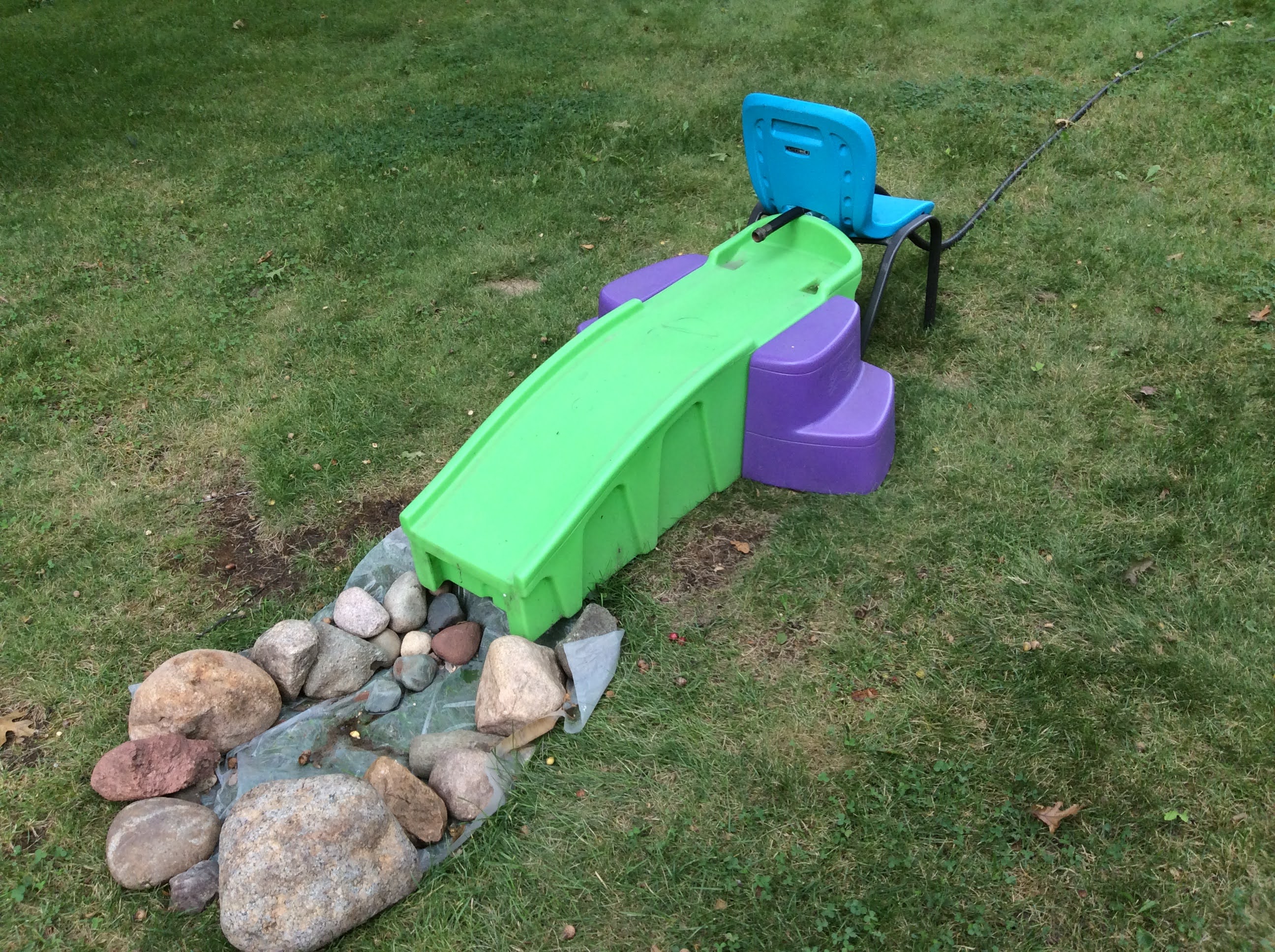 We read The Boxcar Children this past summer and Emma had the idea to create a brook and swimming hole for her Barbies (see picture below).