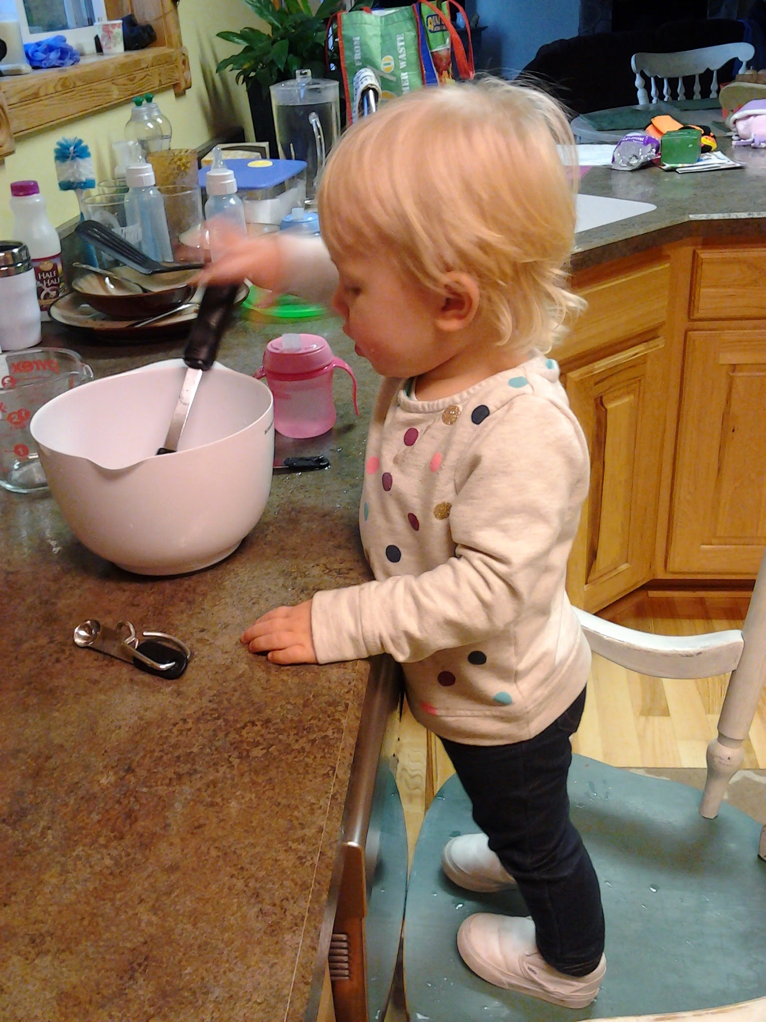 * She still loves making messes (this was helping mommy make her birthday cake):