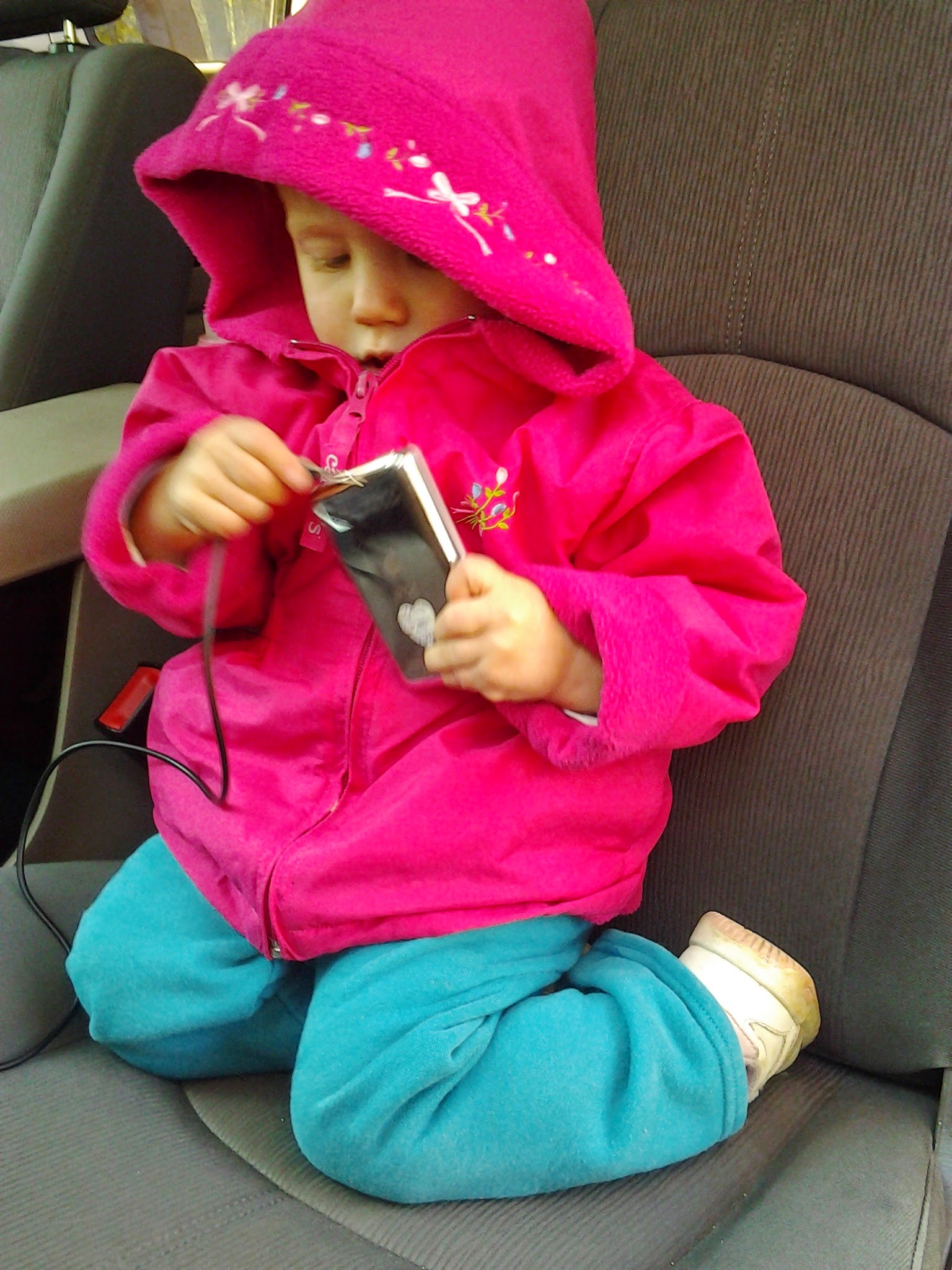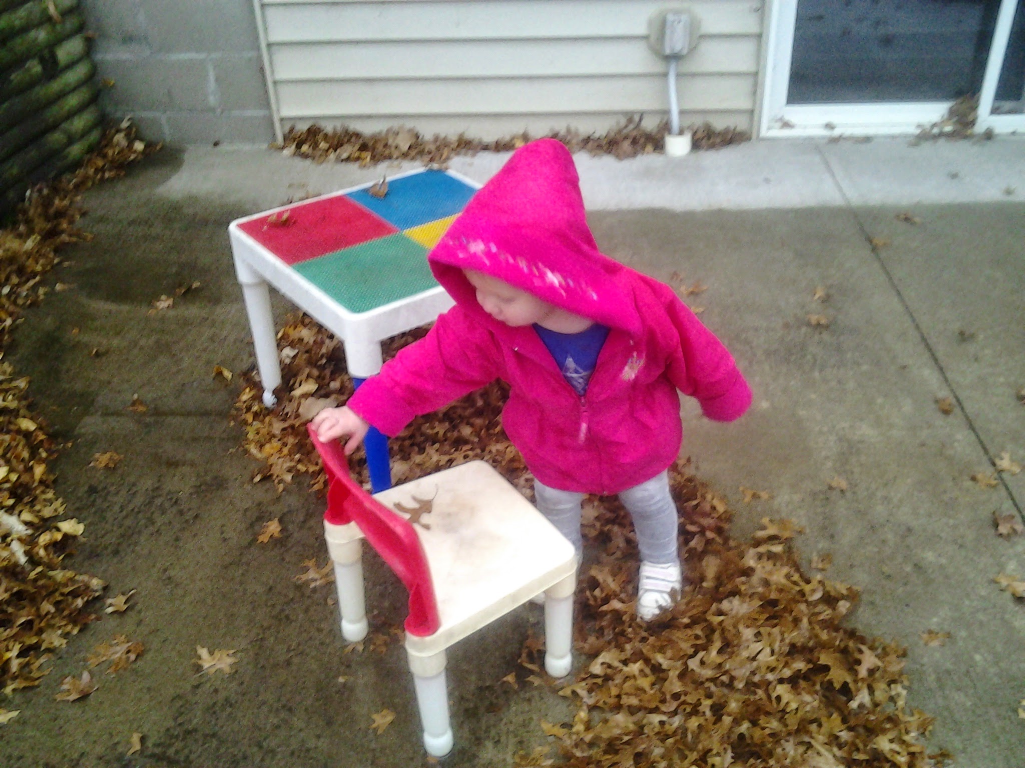 * Emma LOVES being outside. It doesn’t matter if it’s cold, rainy, windy, or nice outside. She enjoys swinging and going down slides, but she also loves just walking around picking up sticks and rocks, pointing out dog poop and ice, and “driving” the car. I can’t wait until the weather warms up and it’s also enjoyable for mommy to be outside! I am not as gungho as Emma is.